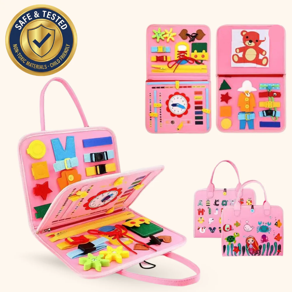 Say goodbye to boredom—whether you’re at home or traveling, this busy board offers a safe, engaging way for your toddler to explore, learn, and grow.